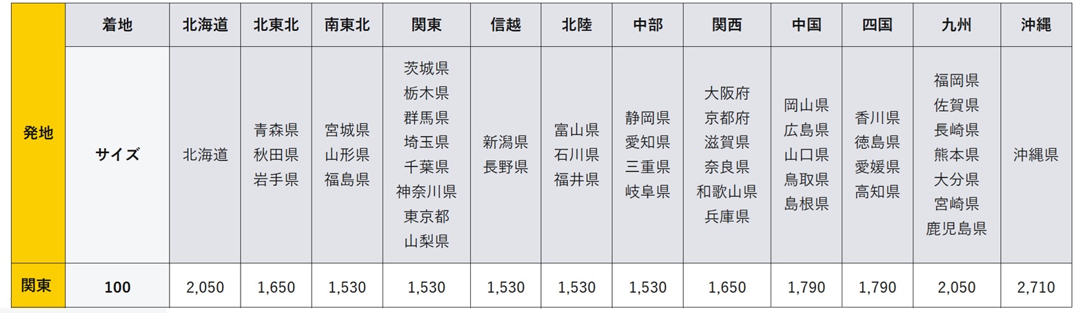 下記より着払い送料一覧をご覧いただけます